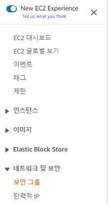 인스턴스 정보란을 오른쪽으로 쭉~ 당기면 보안그룹 이름이 보인다.