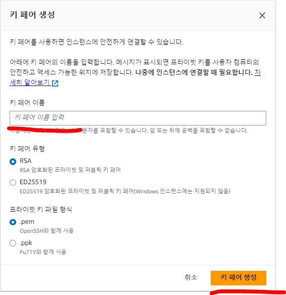 기존에 생성된 키 패어가 있을 경우, 그대로 사용해도 된다.
