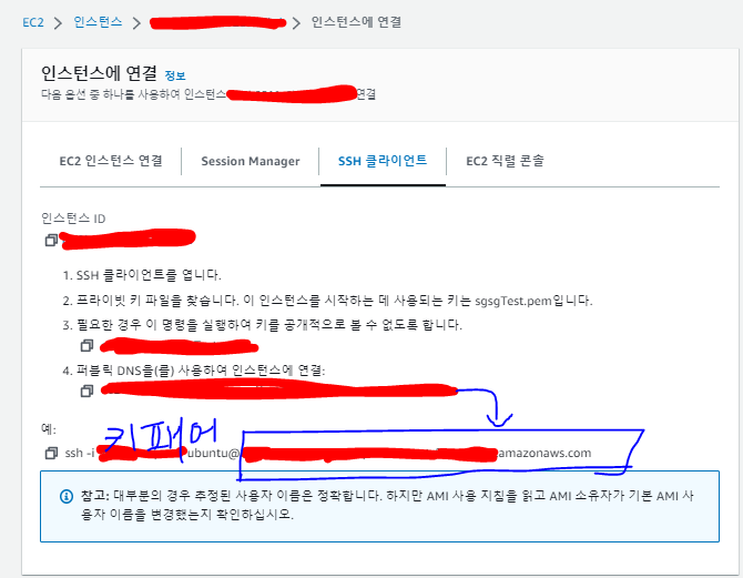 ssh -i 키패어 로컬저장소 ubuntu@퍼블릭 DNS