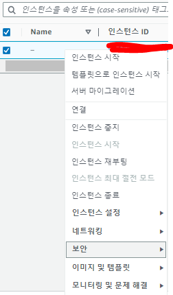 step3. 인스턴스 마우스 오른쪽 키 >보안>보안그룹변경