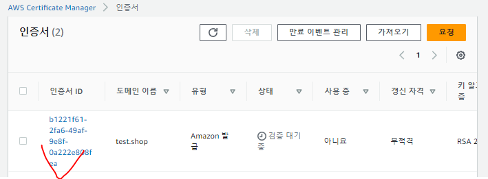마지막으로 인증서 추가해준다. 인증서 상태는 발급됨으로 변경되었는지 확인해야 한다.