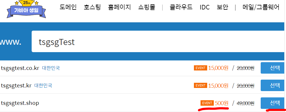 step1. 가비아 도메인을 사용 https://www.gabia.com/